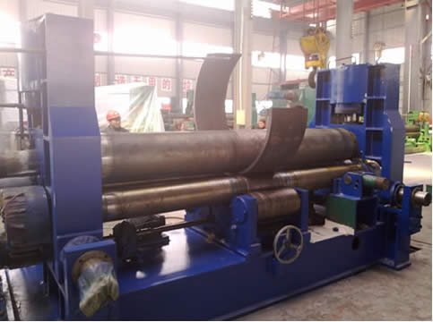 ![]() ![]() 三輥卷管機主要特點: 三輥卷管機結構型式為三輥非對稱式,上輥為主傳動,下輥垂直升降運動,以便夾緊板材,并通過下輥齒輪與上輥齒輪嚙合,同時作為主傳動;邊輥作傾升降運動,三輥卷管機具有預彎和卷圓雙重功能。 結構緊湊,操作維修方便。